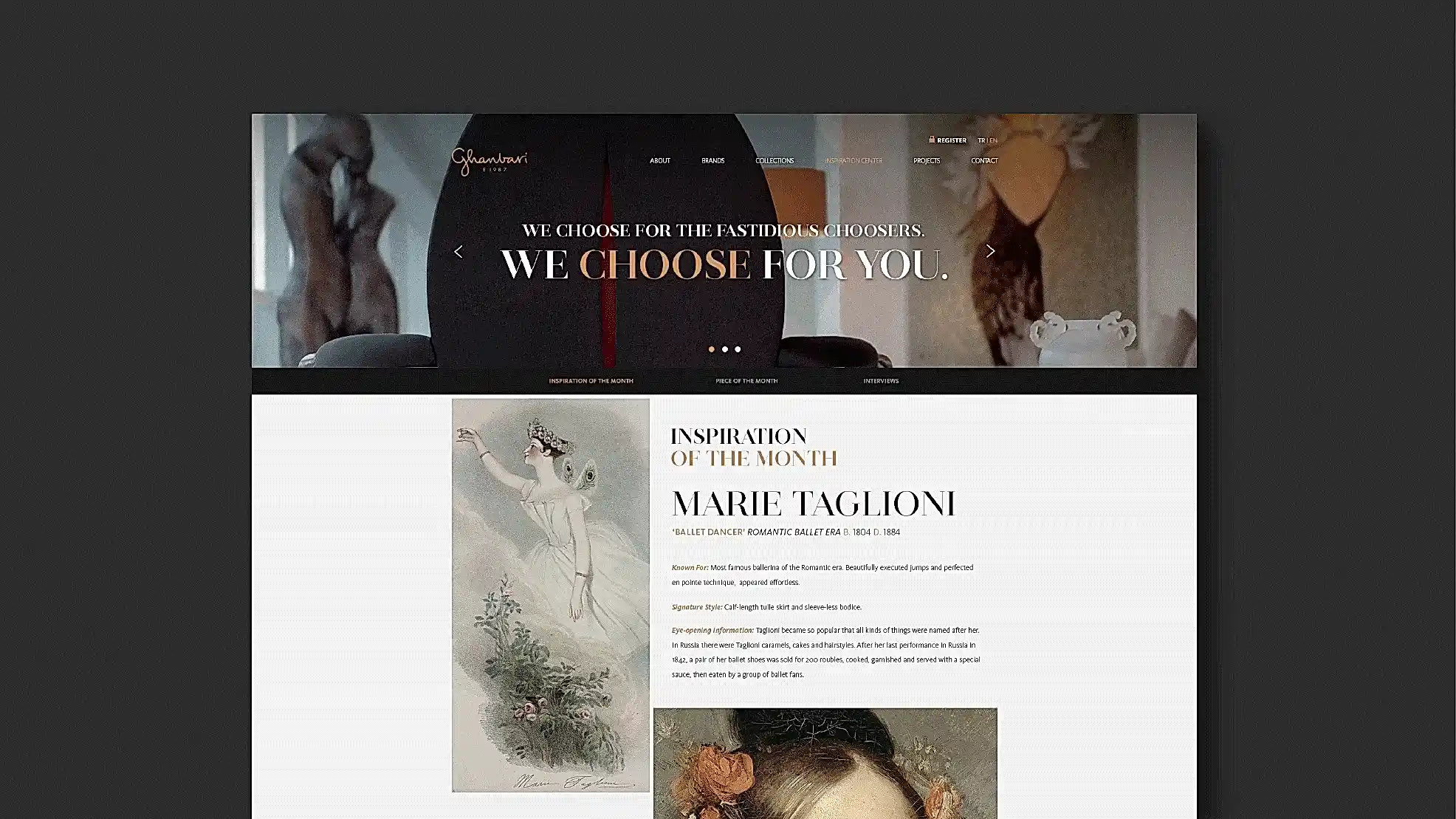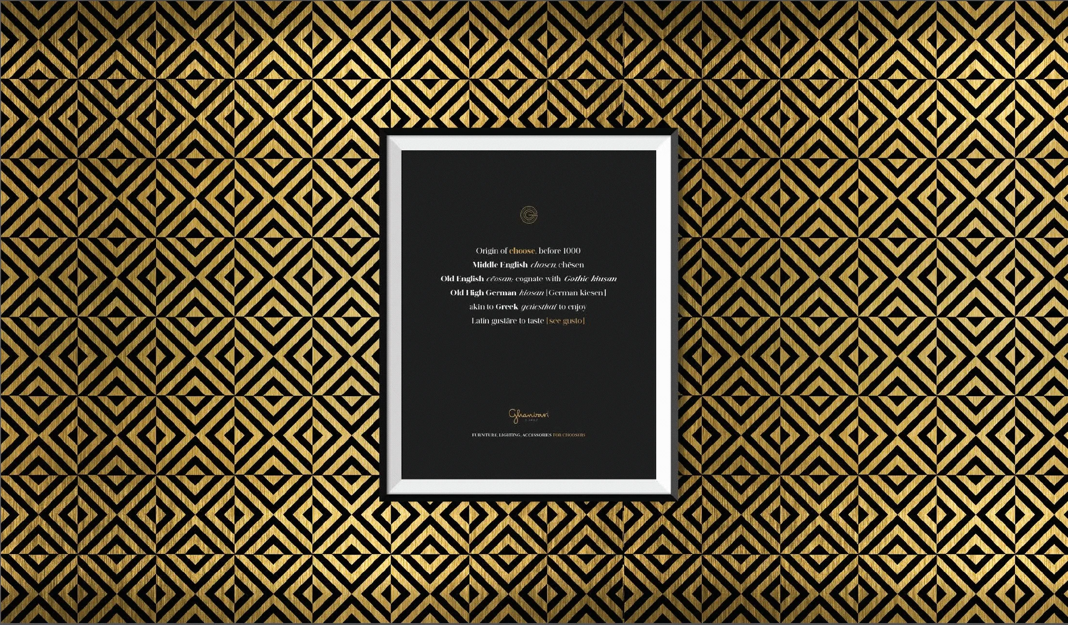 Marka kimliğimizi “seçiciler/choosers” teması üzerine inşa etmeye başladığımızda logodan önce Hazar Mobilya’nın 1987’den bu yana kullandığı isminin değişen sektör ve vizyonlarıyla paralel olarak, değişmeye ihtiyacı olduğunu tespit ettik. Markanın kurucusu Sayın German Ghanbari’nin soyadı bizce bu iş için biçilmiş kaftandı çünkü kendisi sektörde seçiciliğiyle tanınan bir isimdi ve bu algı, yaratmak istediğimiz marka felsefesinin de temelini oluşturuyordu. Üstelik seçmek çok kişisel bir eylemdi, Ghanbari ismi ve sonrasında el yazısı karakterleriyle hazırladığımız logo ise bu kişisellik çerçevesinde bir bütünü oluşturuyordu.