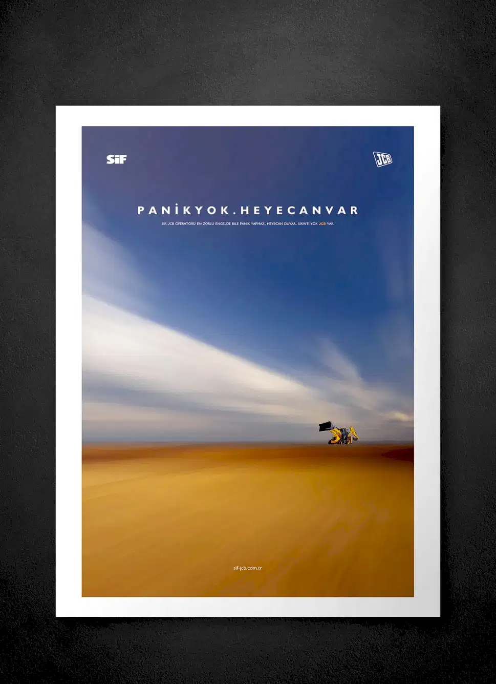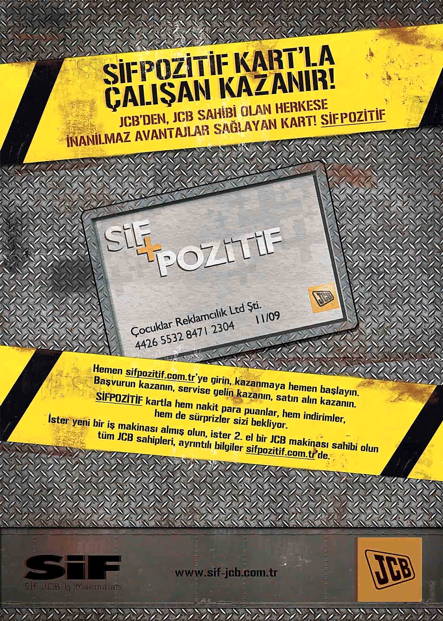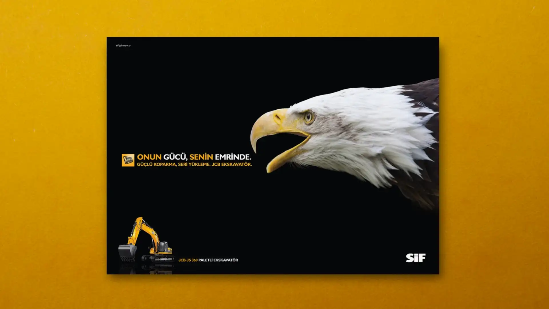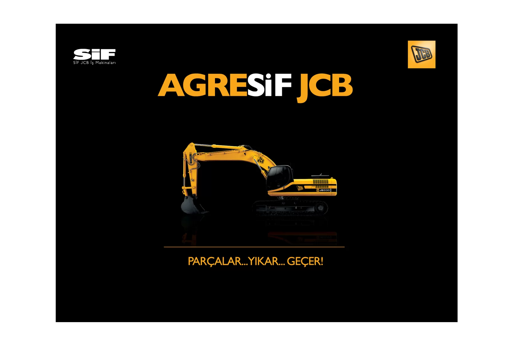 JCB ve Türkiye’deki dağıtımcısı SİF, sektöründe uzmanlıklarıyla bilinen, popüler ve köklü markalardı. Çok fazla söz söylemeye ihtiyaçları yoktu. Biz de o yüzden az söz içeren, SİF ve JCB’nin işbirliğini ön plana çıkaran ve yeni ürünlerinin en çarpıcı özelliklerini tanıtan bir kampanya hazırlayarak 5 sene sürecek bir etkili ajans-müşteri ilişkisinin temellerini attık.