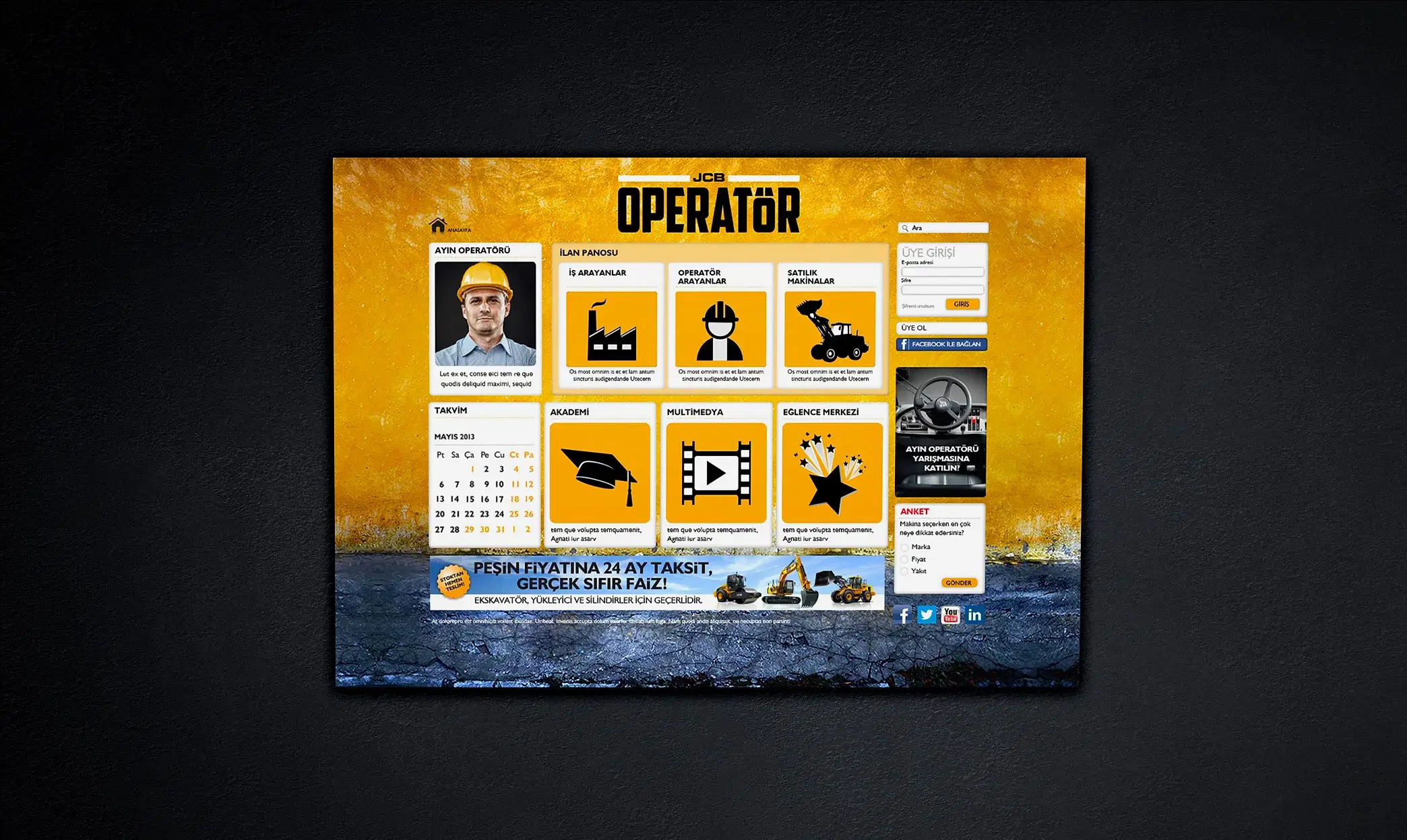 Gerek ürün gerek imaj iletişimlerinde, JCB’nin, “sektörün en güven veren ve en yenilikçi markası” konumunu güçlendiren işlere imza attık. “JCB Operatör” çalışmamızla ise bu dev makineleri kullanan güçlü insanlara bir saygı duruşunda bulunarak sektördeki yerimizi güçlendirdik.