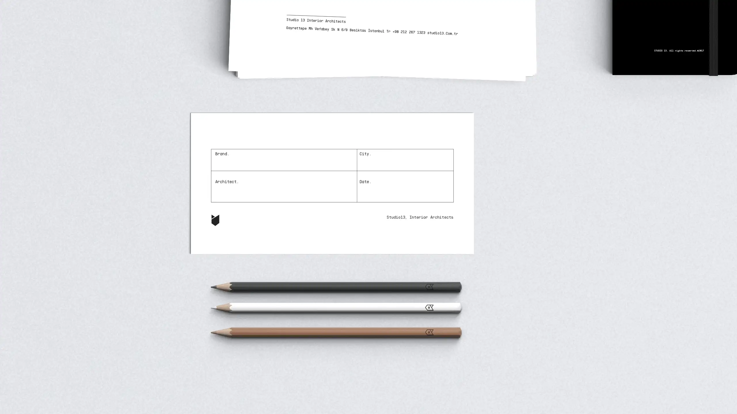 Tasarladıkları alanları yeni hikayelerin yaşanacağı mekanlar olarak gören ve alanı kullanacak insanların hikayelerinden yola çıkarak projelerine başlayan Studio 13’ün marka kimliği ve logosu için biz de kişisel bir hikayeden yola çıktık.